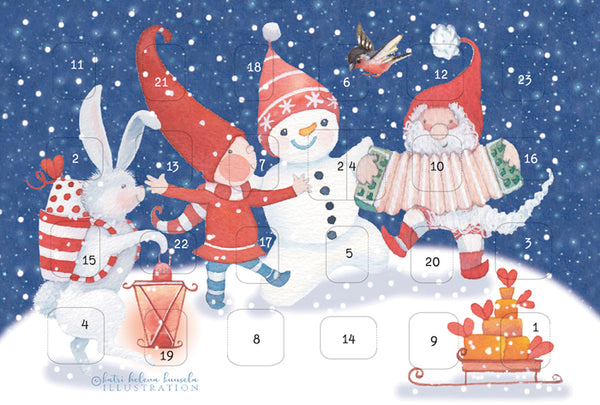2-osainen joulukalenterikortti, Minna L. Immonen