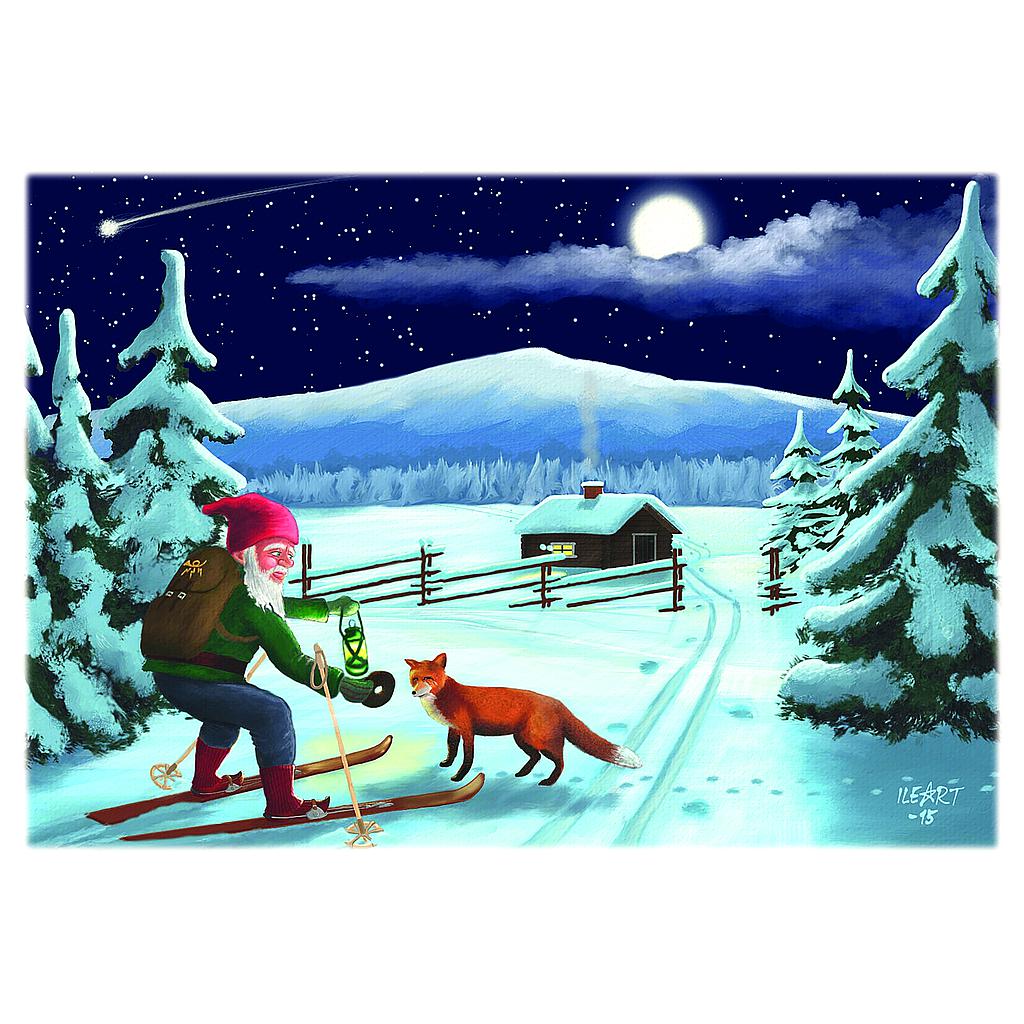 1-osainen joulukortti Ileart, Tonttu ja kettu
