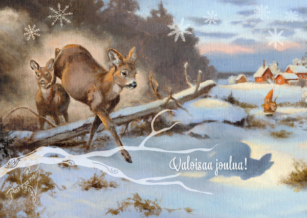 Ilahduta läheisiäsi perinteisellä joulukortilla. Valikoimastamme löytyy erilaisia taitettavia kirjekuorellisia joulukortteja ja A6-kokoisia (105 x 148 mm) postikortteja.