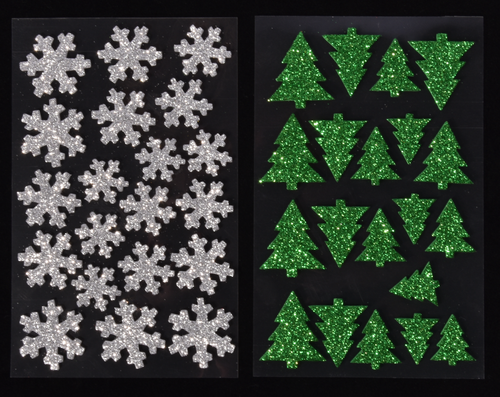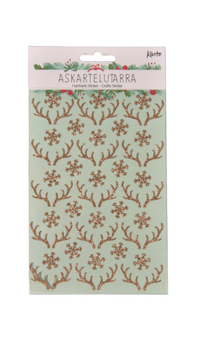 Jouluaiheisia koriste-, paketointi- ja sisustustarroja.