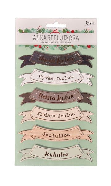 Jouluaiheisia koriste- ja sisustustarroja. Katso myös joulun