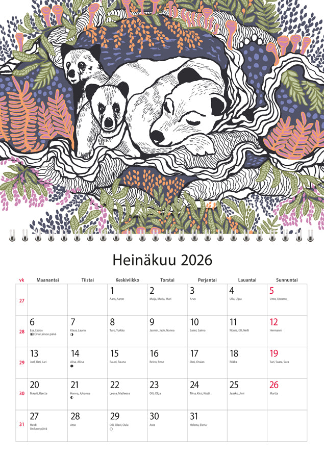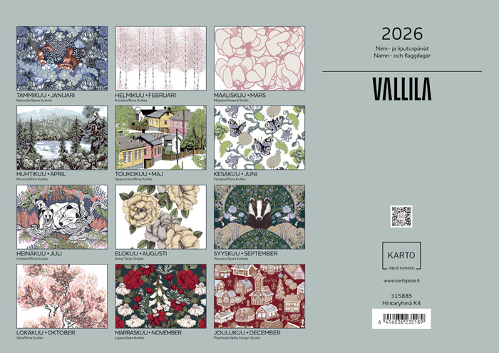 Koko A4Vuosikalenteri 2026 / Årskalender 2026Kielet: suomi, ruotsiSisältää suomalaiset ja suomenruotsalaiset nimi- ja liputuspäivät