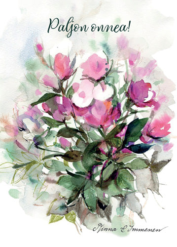 Akvarellitaiteilijoista se tykätyin. Immosen kauniisti kuvittamat, lämminhenkiset tuotteet, kuten kortit ja kalenterit, ilahduttavat ja ihastuttavat tilanteessa kuin tilanteessa. Kuvituksissa korostuvat usein etenkin kauniit kukat ja asetelmat.