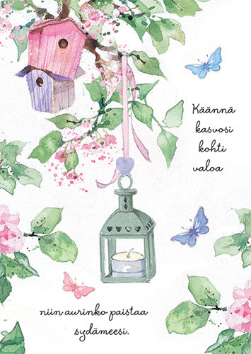 Teksti: Käännä kasvosi kohti valoa, niin aurinko paistaa sydämeesi