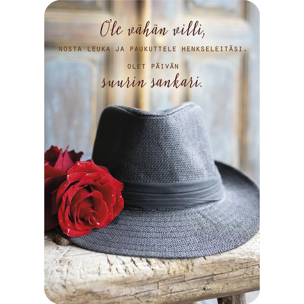 Teksti: "Ole vähän villi, nosta leuka ja paukuttele henkseleitäsi, olet päivän suurin sankari."