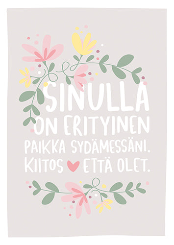 Sinulla on erityinen paikka sydämessäni.Kiitos että olet.
