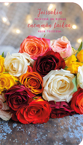 Sisäosan teksti: Paljon onnea-olkoon päiväsi ihan täynnäparhaita hetkiä.