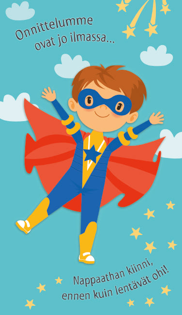 Kansiteksti: "Onnittelumme ovat jo ilmassa... ...nappaa kiinni, ennen kuin ne lentävät ohi!"