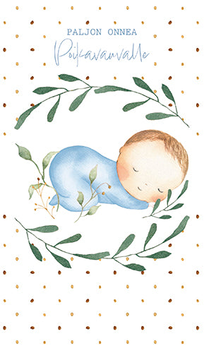 Sisäteksti: " Paljon onnea pienelle pojalle sekä koko perheelle"