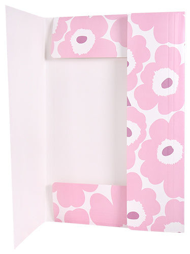 Koko: A4, avattuna n. 525x420 mm Materiaali: 350 g kartonki, valkoinen kuminauha