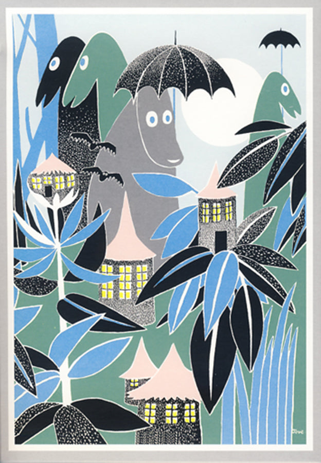 Kotelossa on 16 x 1-osaisia Muumi retro postikorttia, 8 eri mallia.