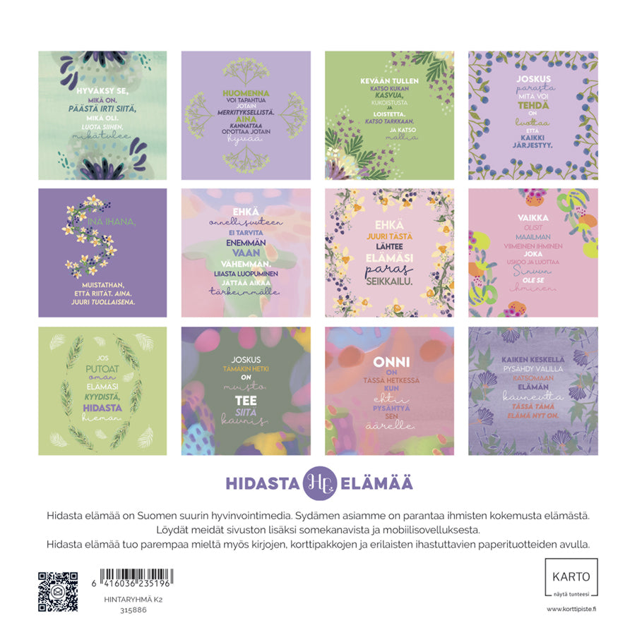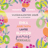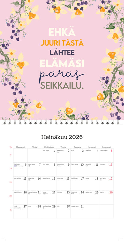 Koko 22 x 22 x 2 cmSeinäkalenteri vuodelle 2026Nimi- ja liputuspäivät