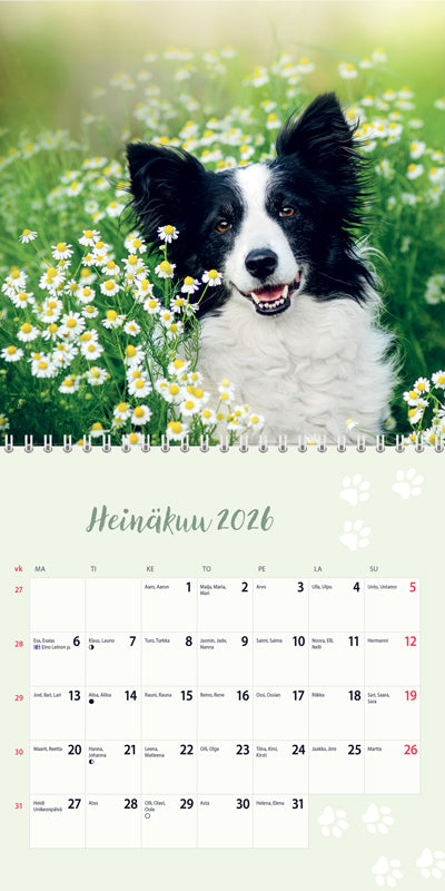 Seinäkalenteri 2026 SPR, söpöt lemmikit